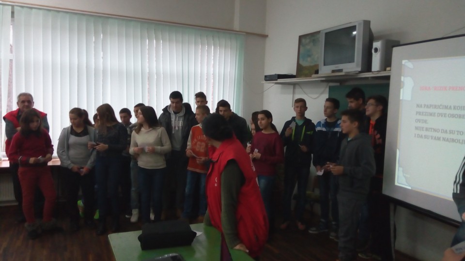 На самом крају предавања одиграна је симболична игрица "Ризик преношења" која је имала за циљ да ученицима кроз форму игре дочара брзину ширења хив вируса. Ученици су веома лепо одреаговали на игру, која их је по свему судећи натерала да се замисле над сјајном поруком коју је она носила а то је "да су партнери мог партнера и моји партнери".