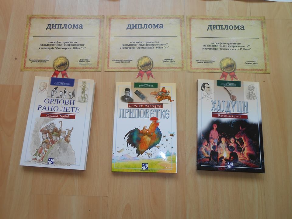 У оквиру изложбе организовано је такмичење за најлепши рад. У категорији ''Јапански мост- Клод Моне'', награду је освојио Небојша Поповић. У категорији ''Звездана ноћ- В.Ван Гог'', награду је освојила Маја Вранковић и у категорији ''Сунцокрети- Винсент Ван Гог'' награду је освојила Николина Јованић. Ученицима су, поред диплома, уручене и књиге.