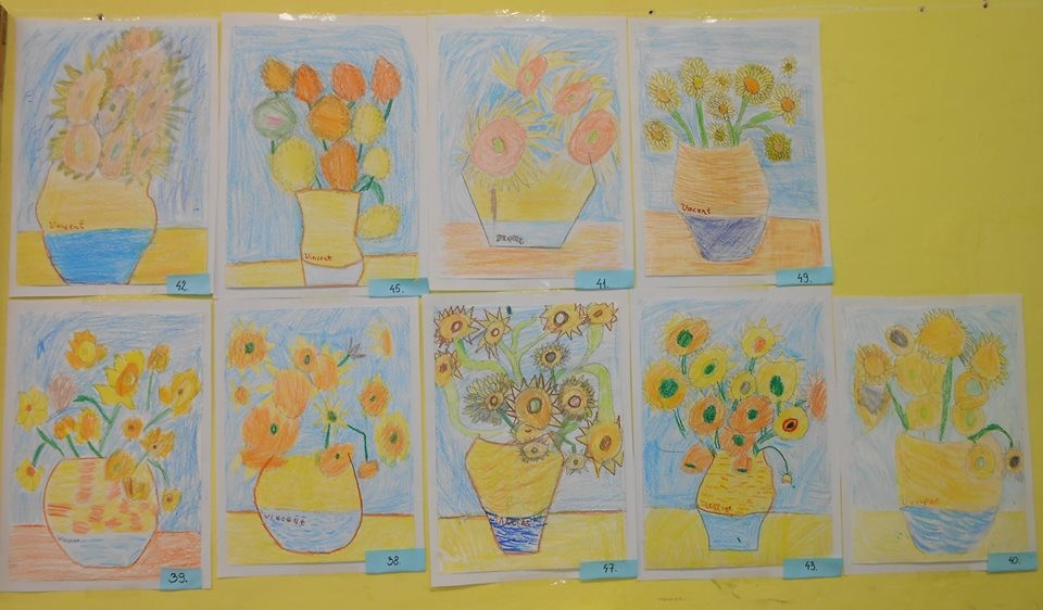 Ученици су приказали репродукције слика великих мајстора: ''Јапански мост'' Клод Моне, ''Звездана ноћ'' и ''Сунцокрети'' Винсент Ван Гог. Радови су настали у оквиру ликовне секције коју води учитељица Јелена Живковић. Ученици су на секцији, поред сликања, учили о животу Клода Монеа и Винсента Ван Гога, уметничким правцима којим припадају и о карактеристикама технике сликања ова два уметника. Ученици су занимљивим програмом показали шта су научили.
